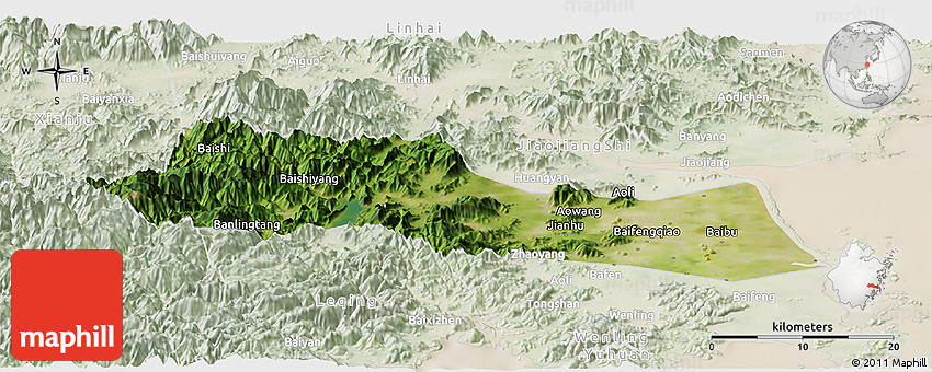 Embed the above satellite panoramic map of Huangyan into your website. Enrich your blog with quality map graphics. Make the web a more beautiful place.