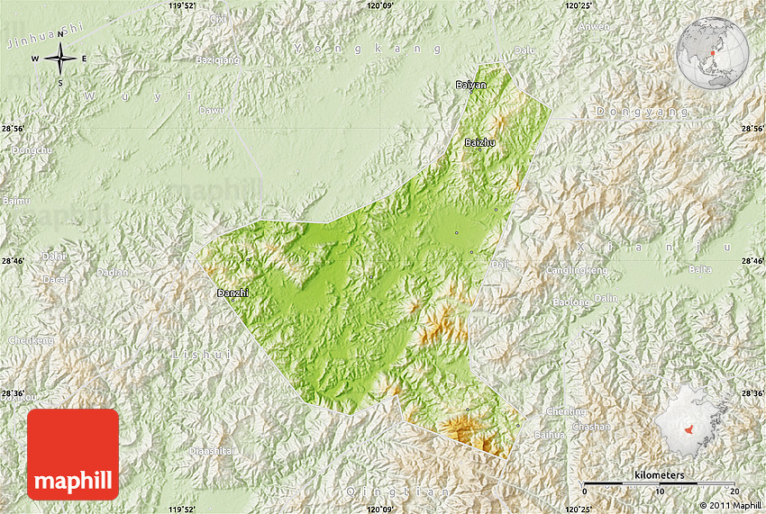 The flat physical map represents one of several map types and styles available. Look at Jiyun, Zhejiang, China from different perspectives.