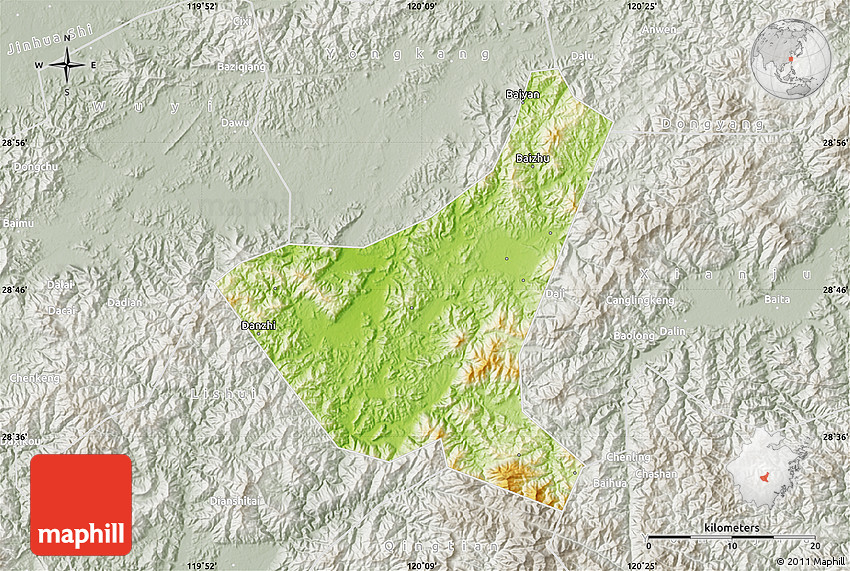 The flat physical map represents one of several map types and styles available. Look at Jiyun, Zhejiang, China from different perspectives.