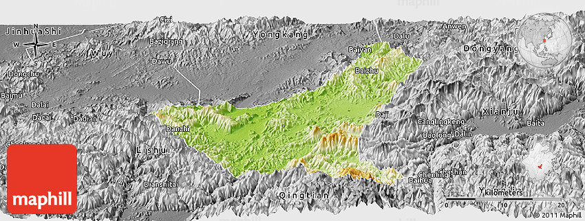 The panoramic physical map represents one of several map types and styles available. Look at Jiyun, Zhejiang, China from different perspectives.