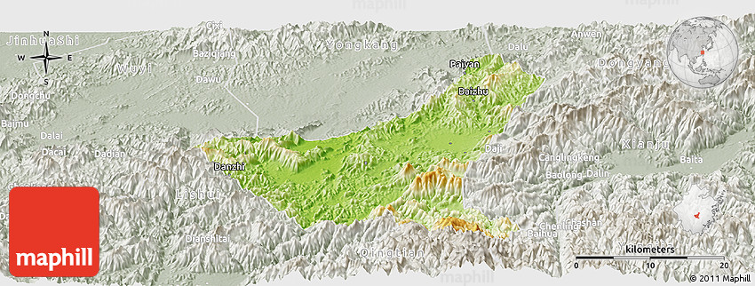 Each map type offers different information and each map style is designed for a different purpose. Read about the styles and map projection used in the above map (Physical Panoramic Map of Jiyun, lighten, semi-desaturated).
