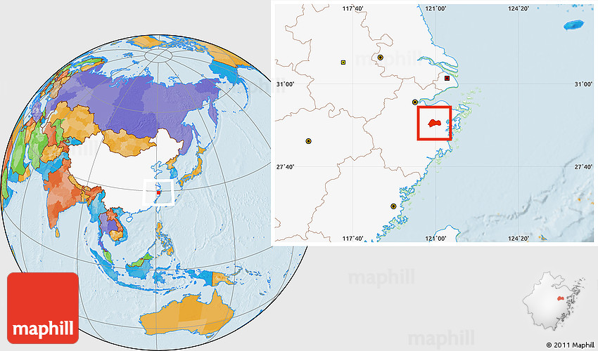 Maphill is a collection of map images. This image combines a political map with the globe centered on Xinchang. Use the buttons under the image to switch to different map types.