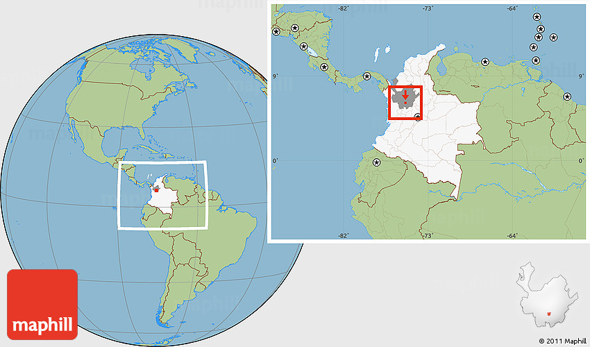 Maphill is a collection of map images. This image combines a savanna style map with the globe centered on Rionegro. Use the buttons under the image to switch to different map types.