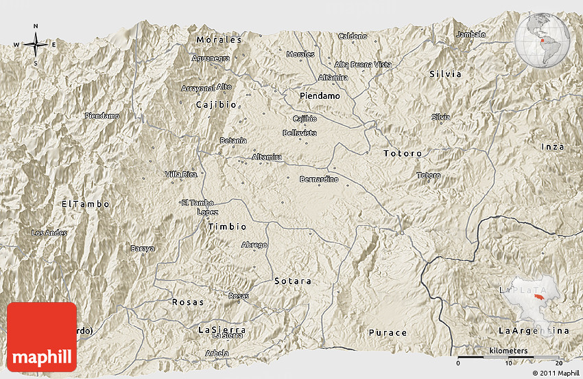 Each map style has its advantages. No map type is the best. The best is that Maphill lets you look at Popayan from many different perspectives.