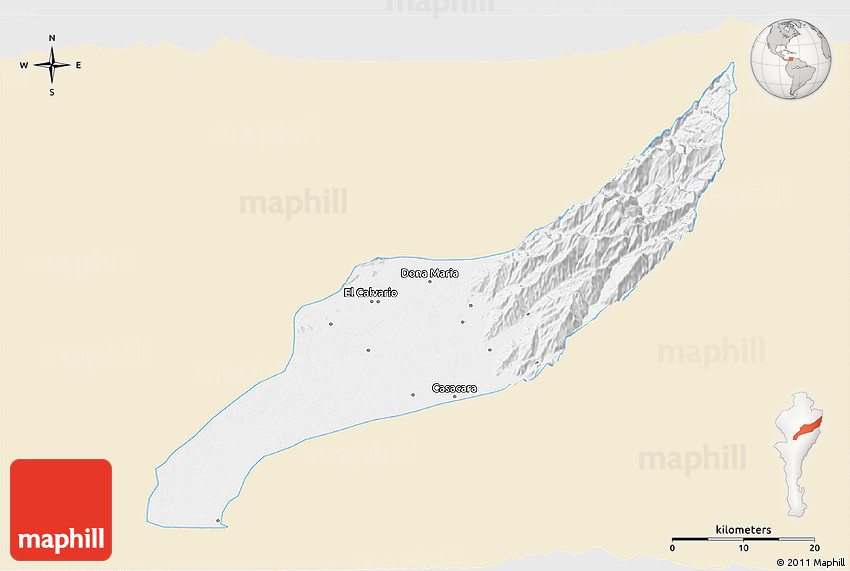 This map uses colors of vintage antique maps. Agustin Codazzi is highlighted with white. The rest of the map is beige colored shaded relief map.