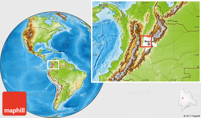 Maphill is a collection of map images. This image combines a physical map with the globe centered on Sasaima. Use the buttons under the image to switch to different map types.