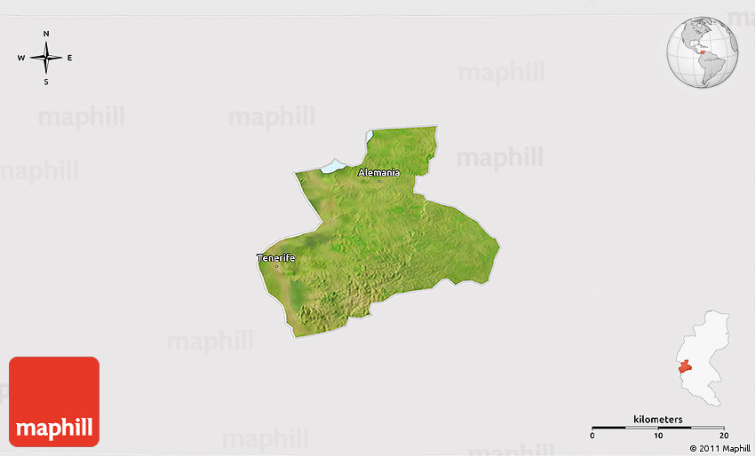 The 3D satellite map represents one of several map types and styles available. Look at Tenerife, Magdalena, Colombia from different perspectives.