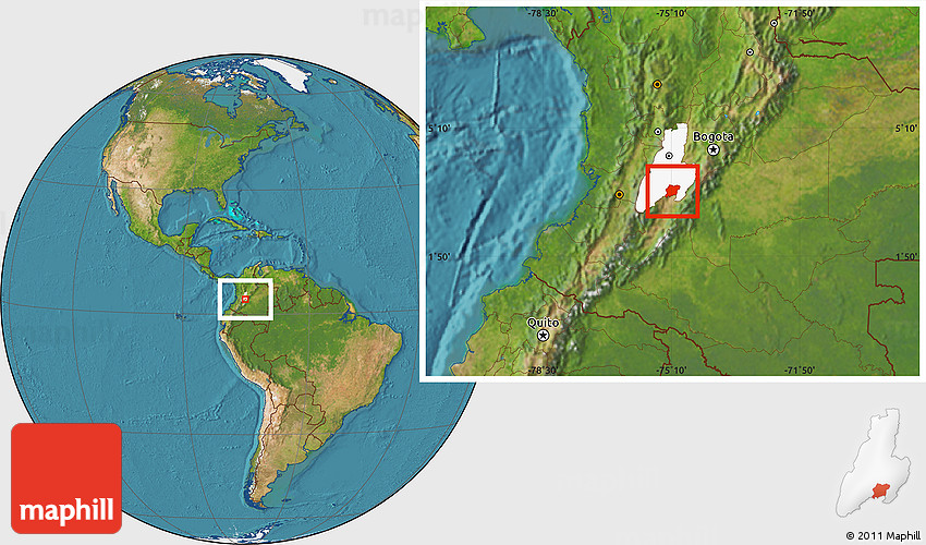 Maphill is a collection of map images. This image combines a satellite map with the globe centered on Natagaima. Use the buttons under the image to switch to different map types.
