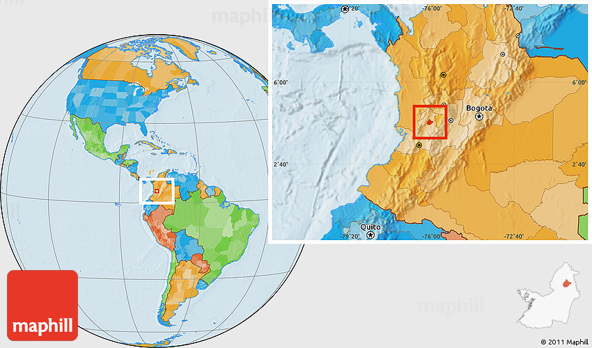 Maphill is a collection of map images. This image combines a political map with the globe centered on Zarzal. Use the buttons under the image to switch to different map types.
