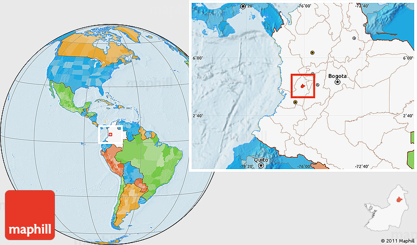 Maphill is a collection of map images. This image combines a political map with the globe centered on Zarzal. Use the buttons under the image to switch to different map types.