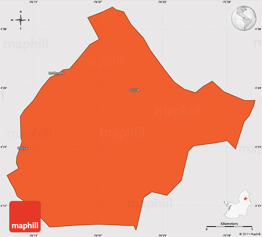 Each map type offers different information and each map style is designed for a different purpose. Read about the styles and map projection used in the above map (Political Simple Map of Zarzal, cropped outside).