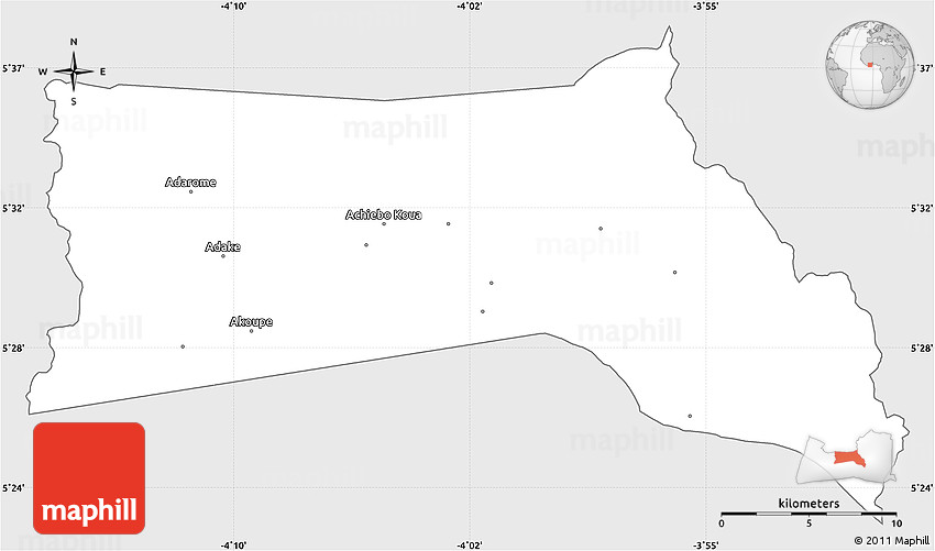 The simple silver style outline map represents one of several map types and styles available. Look at Anyama, Abidjan, Cote d'Ivoire from different perspectives.