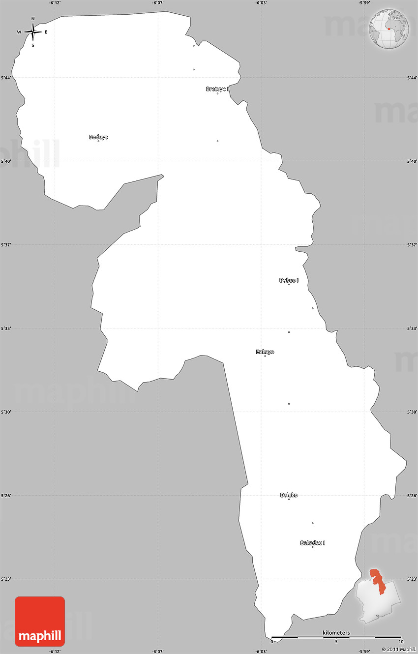 The simple gray outline map represents one of several map types and styles available. Look at Gueyo, Sassandra, Cote d'Ivoire from different perspectives.