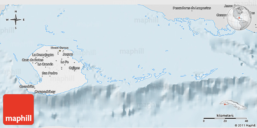 Embed the above silver style 3D map of Isla de la Juventud into your website. Enrich your blog with quality map graphics. Make the web a more beautiful place.