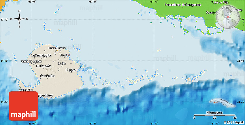 Maphill is a collection of map images. This shaded relief map of Isla de la Juventud is one of them. Click on the Detailed button under the image to switch to a more detailed map.