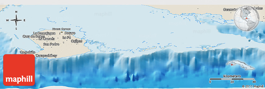 Maphill is a collection of map images. This perspective view of Isla de la Juventud at an angle of 30° is one of these images. Use the Detailed button under the image to switch to a detailed map.