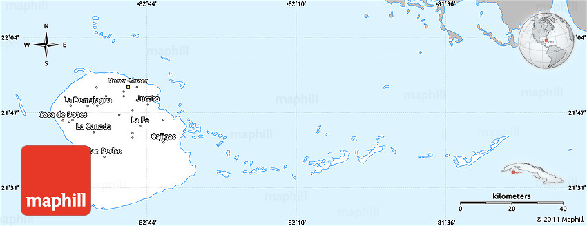 Maphill is a collection of map graphics. This simple outline map of Isla de la Juventud is one of these images. Use the buttons under the image to switch to more comprehensive and detailed map types.
