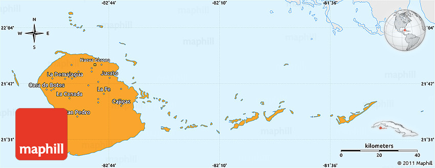 Maphill is a collection of map graphics. This simple outline map of Isla de la Juventud is one of these images. Use the buttons under the image to switch to more comprehensive and detailed map types.