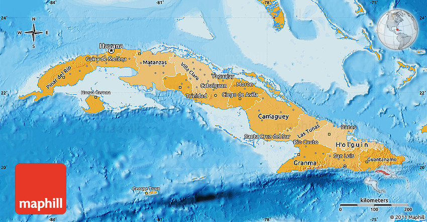 Maphill is a collection of map images. This political shades map of Cuba is one of them. Click on the Detailed button under the image to switch to a more detailed map.