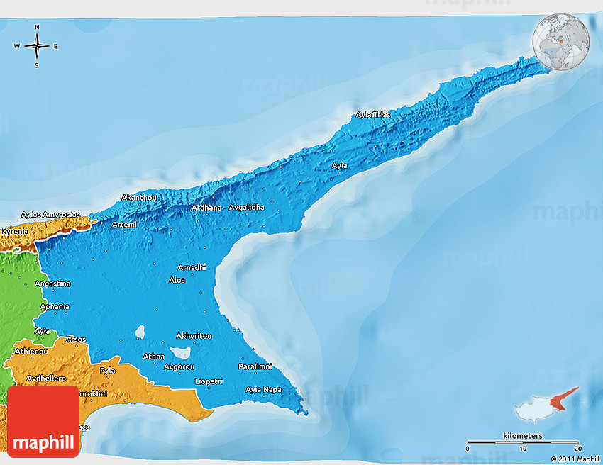The 3D political map represents one of many map types and styles available. Look at Famagusta from different perspectives.