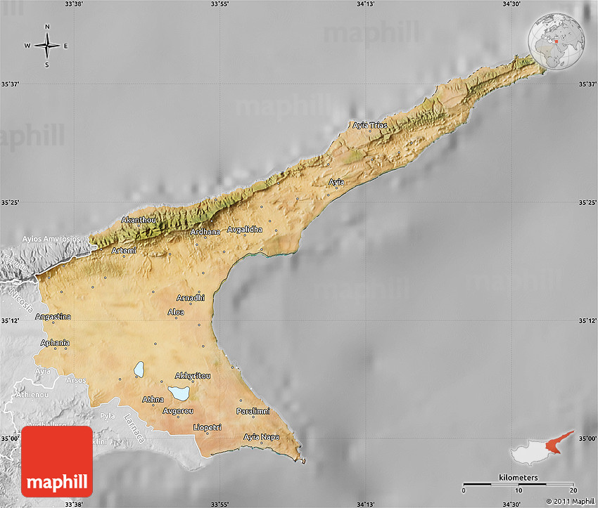 Each map type offers different information and each map style is designed for a different purpose. Read about the styles and map projection used in the above map (Satellite Map of Famagusta, lighten, desaturated).
