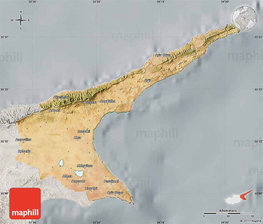 Each map type offers different information and each map style is designed for a different purpose. Read about the styles and map projection used in the above map (Satellite Map of Famagusta, lighten, semi-desaturated).