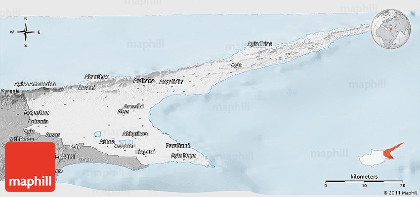 The grey colored map. Famagusta is highlighted in white. This color scheme is similar to silver styled maps, but compared to the latter, a darker shade of gray is used.