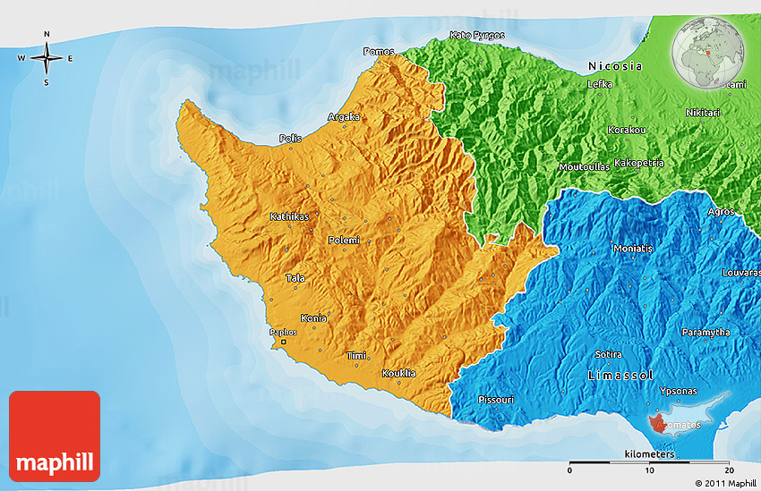 The 3D political map represents one of many map types and styles available. Look at Paphos from different perspectives.