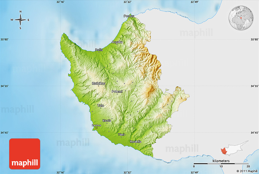 Maphill is a collection of map images. This physical map of Paphos is one of them. Click on the Detailed button under the image to switch to a more detailed map.