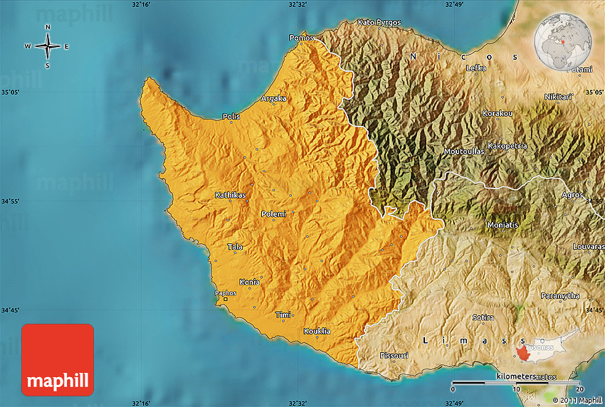 Maphill is a collection of map images. This political map of Paphos is one of them. Click on the Detailed button under the image to switch to a more detailed map.