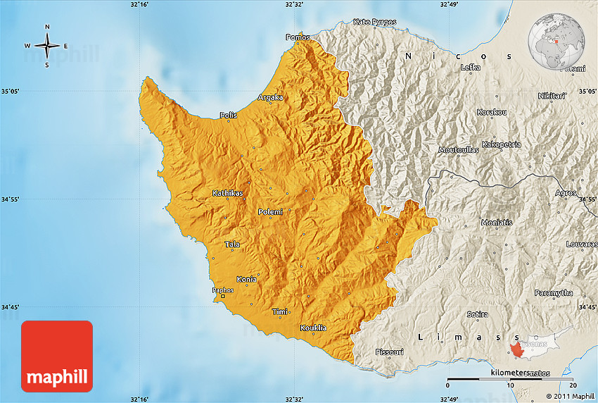 Maphill is a collection of map images. This political map of Paphos is one of them. Click on the Detailed button under the image to switch to a more detailed map.