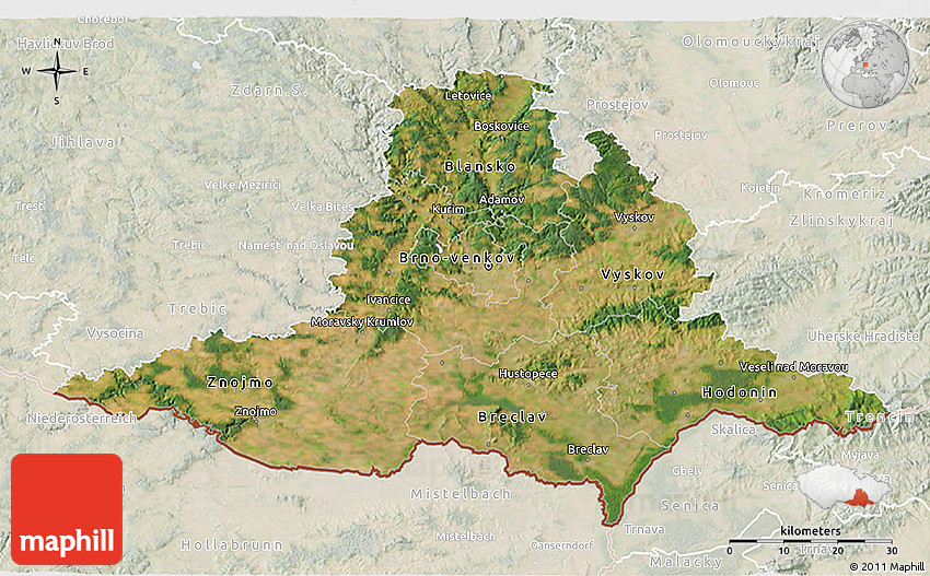 Satellite map shows the Earth's surface as it really looks like. The above map is based on satellite images taken on July 2004. This satellite map of Jihomoravský kraj is meant for illustration purposes only. For more detailed maps based on newer satellite and aerial images switch to a detailed map view.