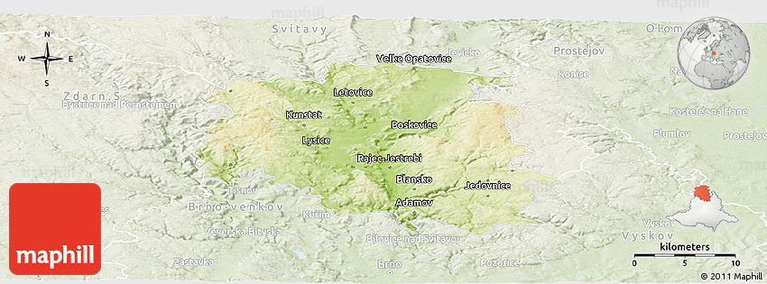 The panoramic physical map represents one of several map types and styles available. Look at Blansko, Jihomoravský kraj, Czech Republic from different perspectives.