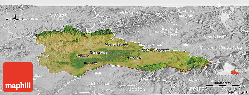 Each map style has its advantages. No map type is the best. The best is that Maphill lets you look at Hodonín from many different perspectives.
