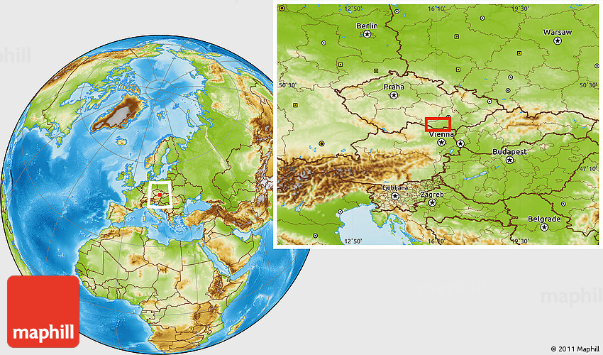 Maphill is a collection of map images. This image combines a physical map with the globe centered on Křídlŭvky. Use the buttons under the image to switch to different map types.