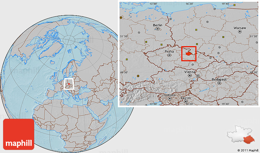 Maphill is a collection of map images. This image combines a gray map with the globe centered on Rychnov n.K.. Use the buttons under the image to switch to different map types.