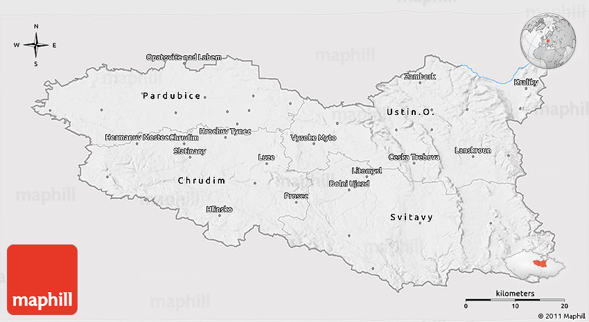 The 3D silver style map represents one of many map types and styles available. Look at Pardubický kraj from different perspectives.