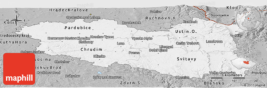 Embed the above gray panoramic map of Pardubický kraj into your website. Enrich your blog with quality map graphics. Make the web a more beautiful place.