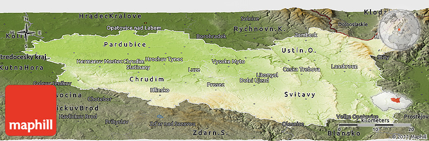 The panoramic physical map represents one of many map types and styles available. Look at Pardubický kraj from different perspectives.