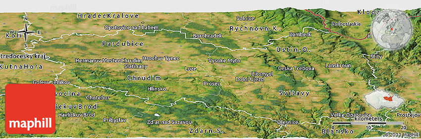 Embed the above satellite panoramic map of Pardubický kraj into your website. Enrich your blog with quality map graphics. Make the web a more beautiful place.