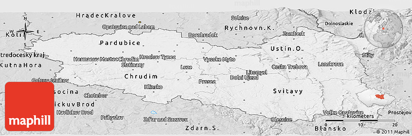 Embed the above silver style panoramic map of Pardubický kraj into your website. Enrich your blog with quality map graphics. Make the web a more beautiful place.