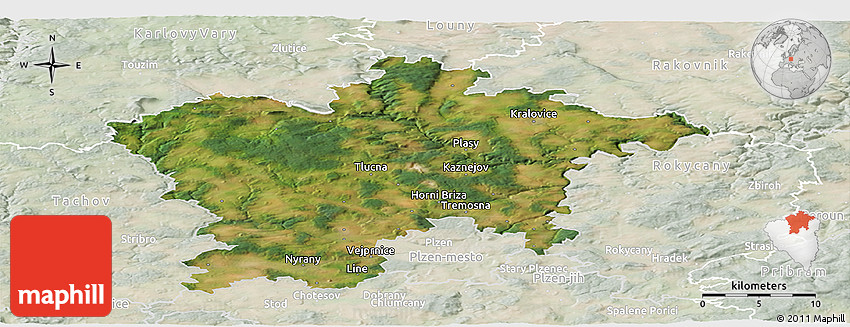 The panoramic satellite map represents one of several map types and styles available. Look at Plzeň-sever, Plzeňský kraj, Czech Republic from different perspectives.