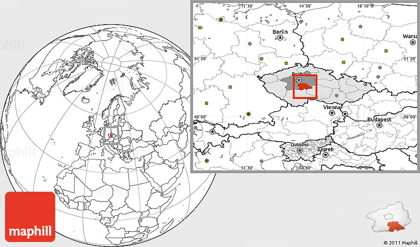 Maphill is a collection of map images. This image combines a blank map with the globe centered on Benešov. Use the buttons under the image to switch to different map types.