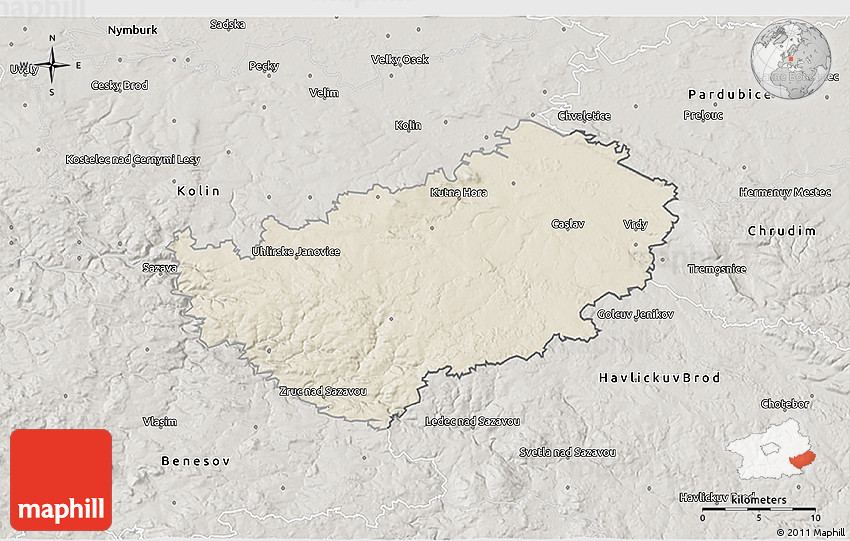 Shaded relief map shows landscape features, such as mountains, valleys and plateaus. Flat areas are smooth on the map, areas with steep slopes and mountains appear more rough. The above map of Kutná Hora was created using a digital elevation model.