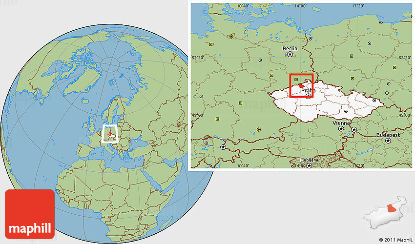 Maphill is a collection of map images. This image combines a savanna style map with the globe centered on Ústí n.L.. Use the buttons under the image to switch to different map types.