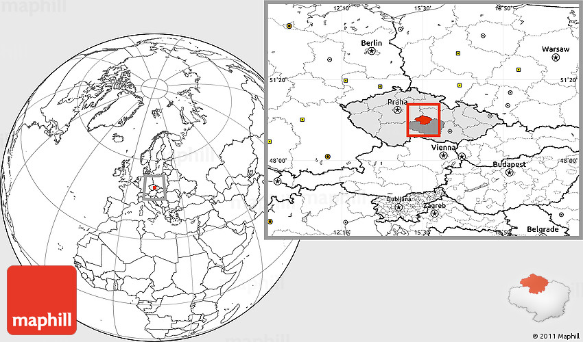 Maphill is a collection of map images. This image combines a blank map with the globe centered on Havlíčkův Brod. Use the buttons under the image to switch to different map types.