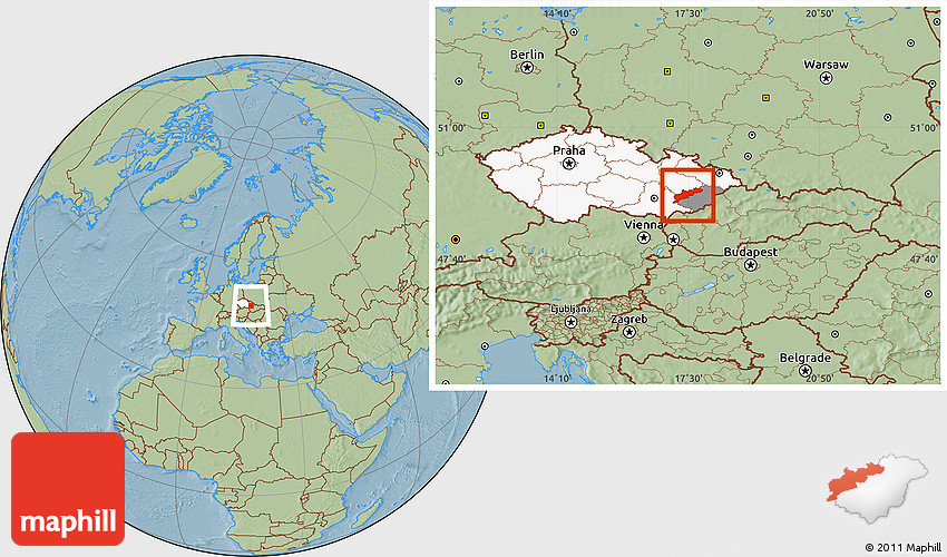 Maphill is a collection of map images. This image combines a savanna style map with the globe centered on Kroměříž. Use the buttons under the image to switch to different map types.