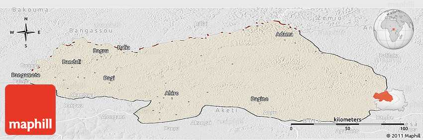Each map type offers different information and each map style is designed for a different purpose. Read about the styles and map projection used in the above map (Shaded Relief Panoramic Map of Bondo, lighten, desaturated).