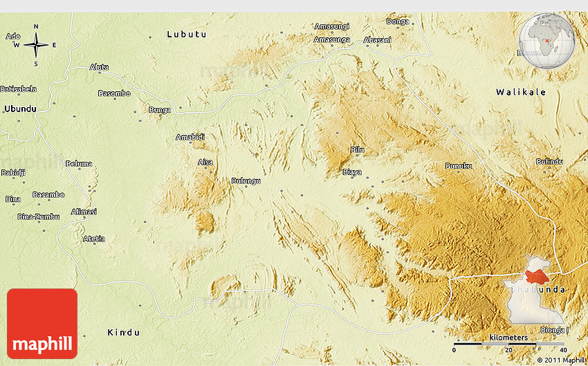 The 3D physical map represents one of several map types available. Look at Punia, Maniema, Kivu, Democratic Republic of the Congo from different perspectives.
