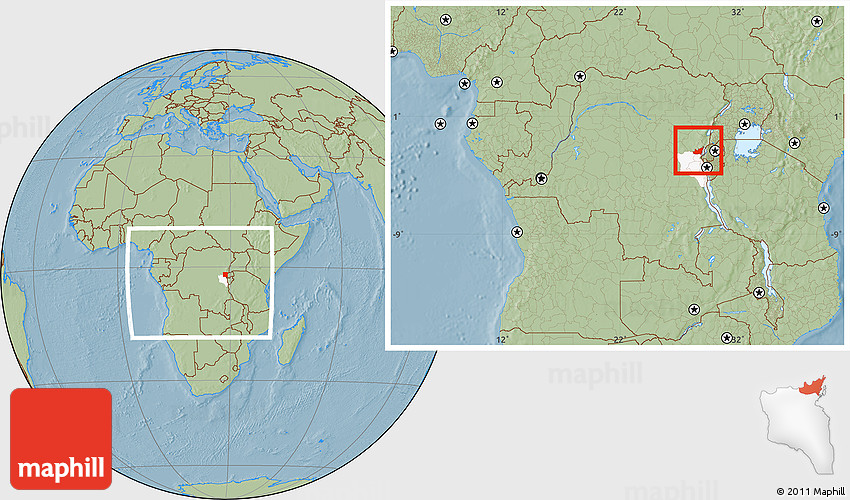 Each map type offers different information and each map style is designed for a different purpose. Read about the styles and map projection used in the above map (Savanna Style Location Map of Kalehe, highlighted parent region, within the entire country, hill shading).